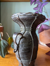 Excellent bronze basket weave vase in the shape of a Japanese fisherman's prawn trap.
