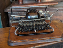 A really beautiful antique typewriter exuding steampunk class. Appears to be functioning, the carriage moves as it should and there are no sticky keys, but untested with ink. Comes with original case which is in quite poor condition.