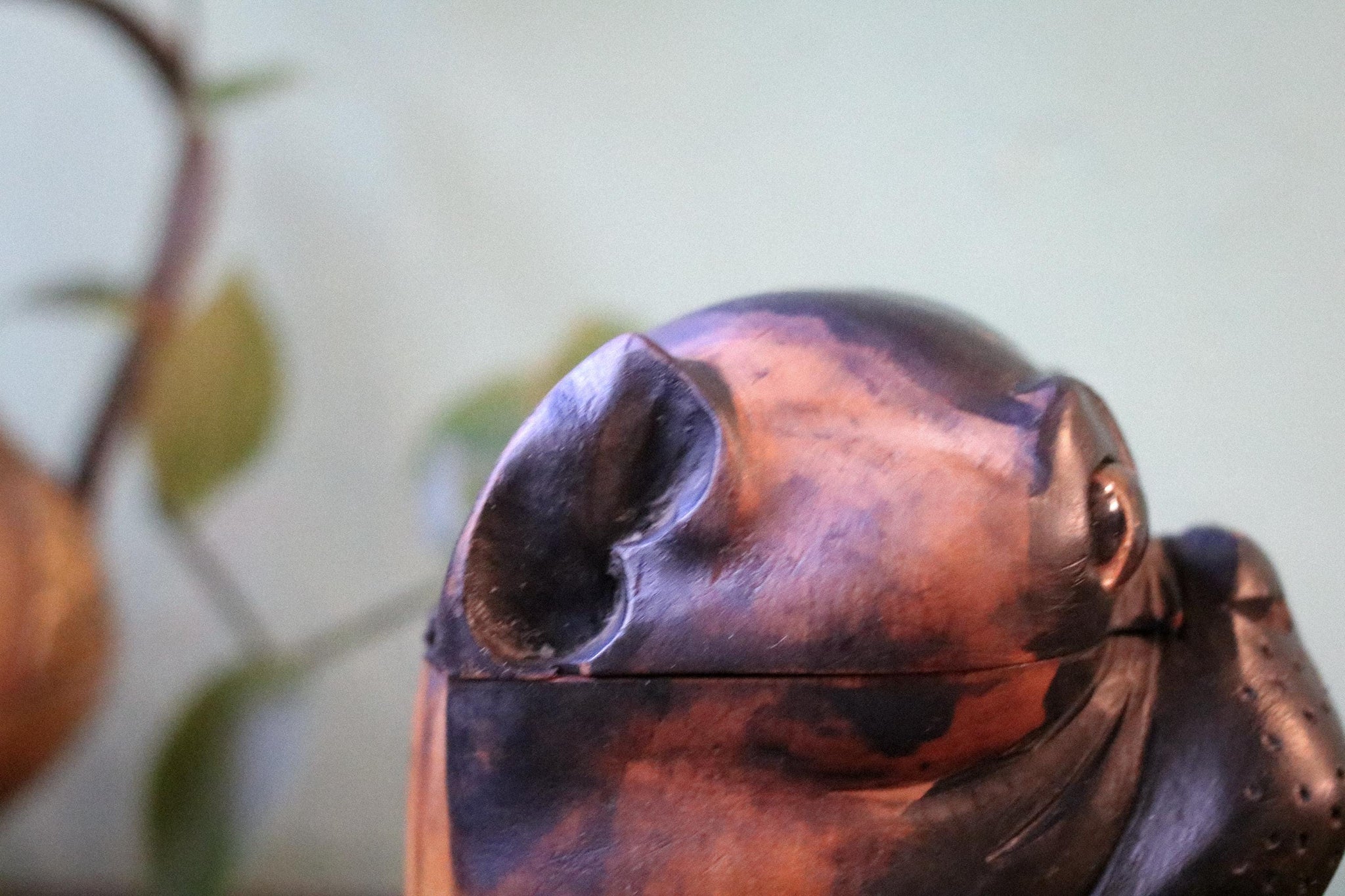 A true collector’s item, this inkwell is both decorative and functional—perfect for lovers of antique canine objets d’art, Black Forest carvings, or unique desk accessories.