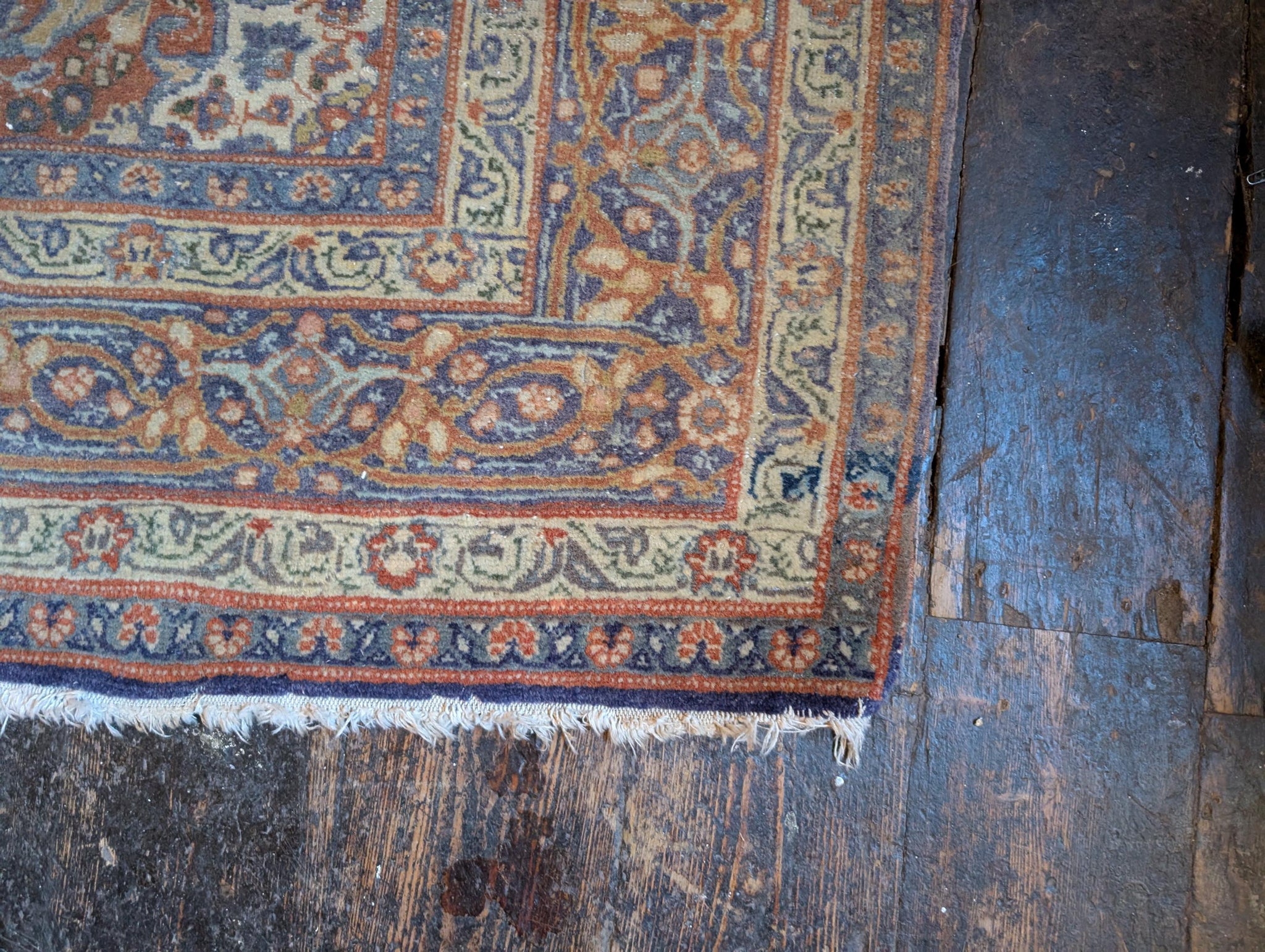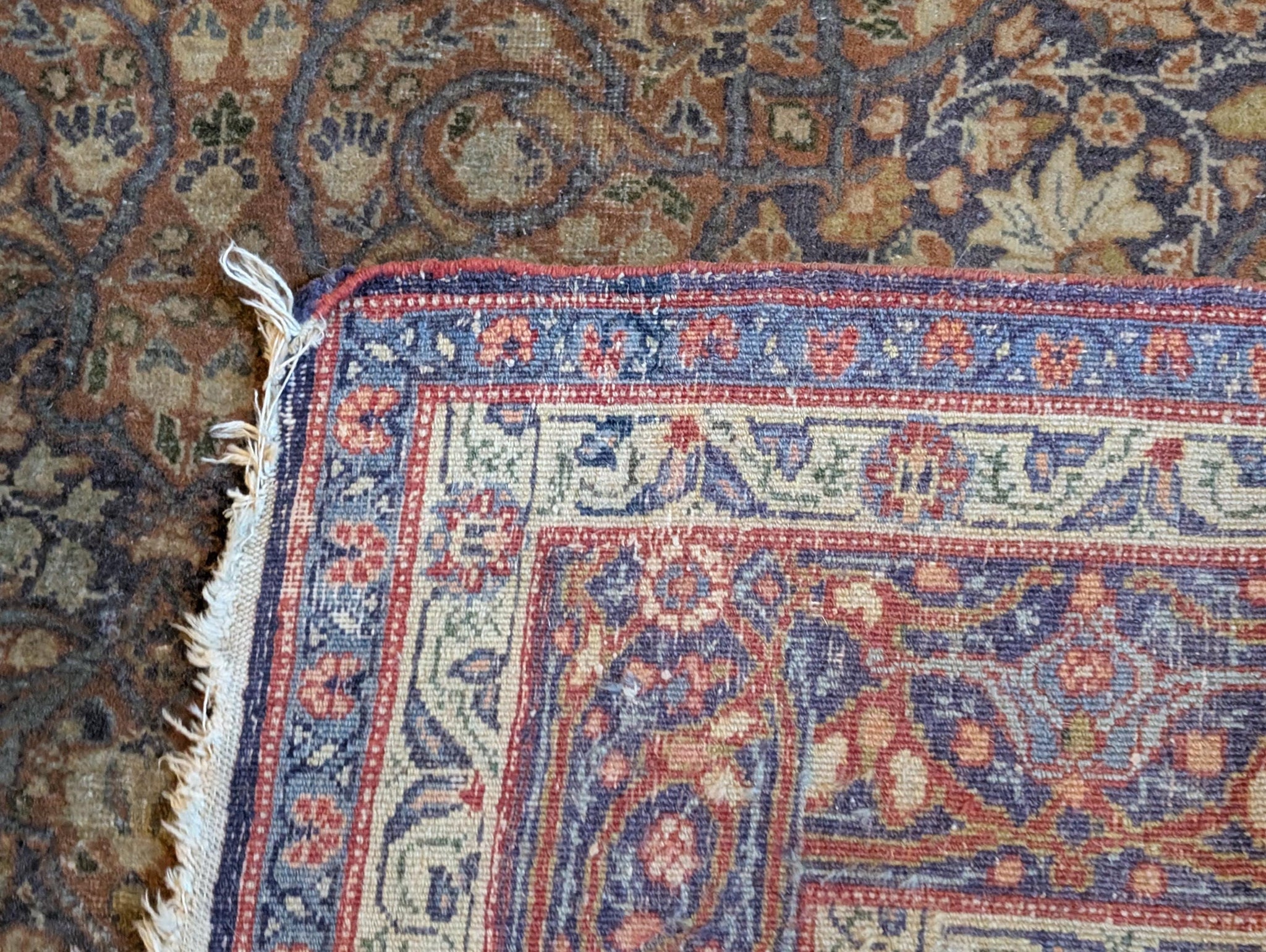 Condition is good, lived-in vintage: even low pile with age fade, fraying at the fringes, a few wavies to the edges and light wear to side cords—nothing that affects use, and the patina is gorgeous. Could benefit from a clean.