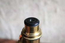 A handsome late Victorian–Edwardian brass microscope in excellent display condition and, importantly, still working. The coarse and fine focus run smoothly, the mirror tilts freely and throws plenty of light, and the stage clips hold a slide as they should.