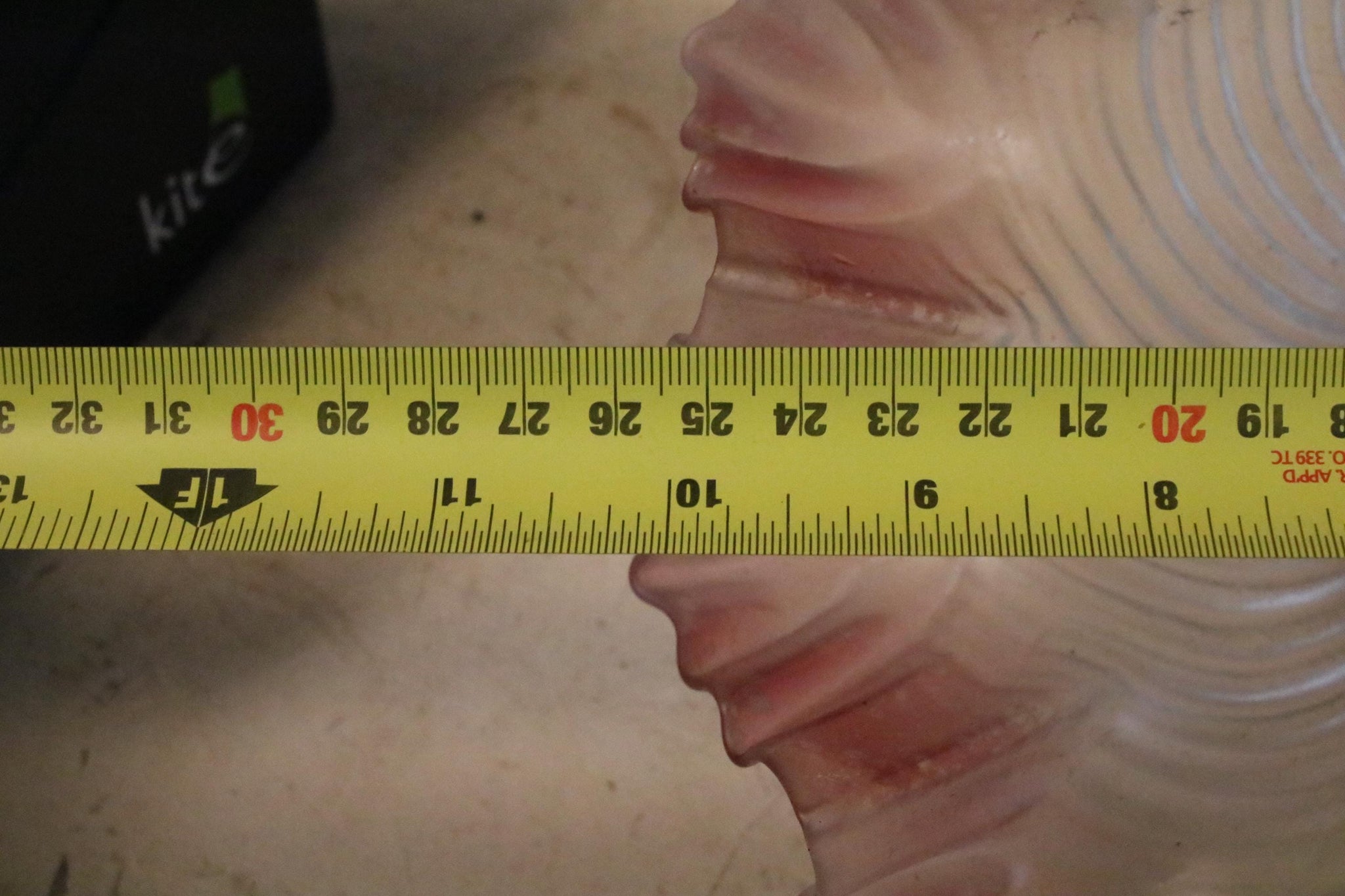 This piece is perfect over a small table, bedside, or in a row over a counter—just enough drama with a beautiful softness. There are no chips or cracks to the glass, only minor wear appropriate to age.