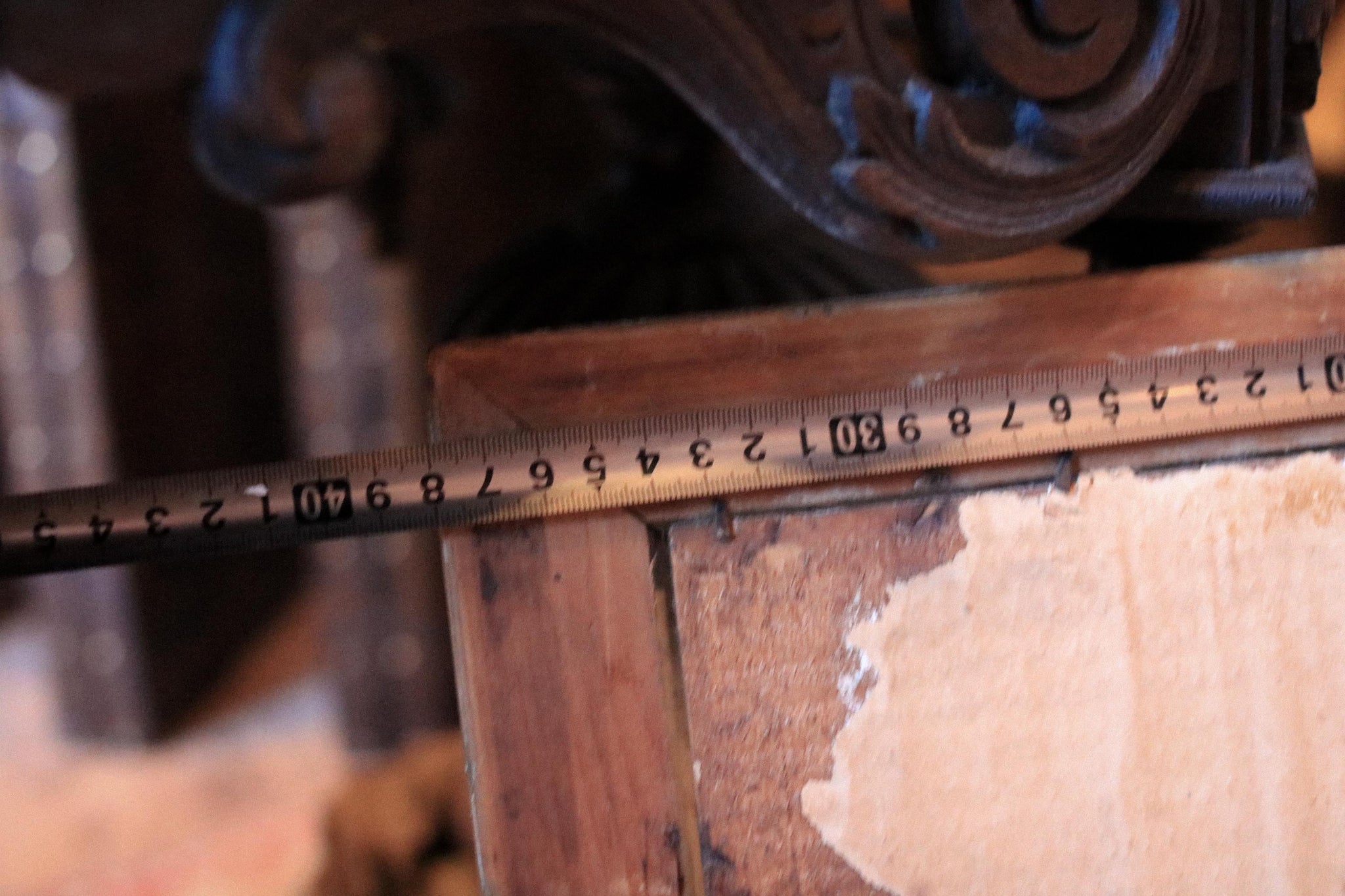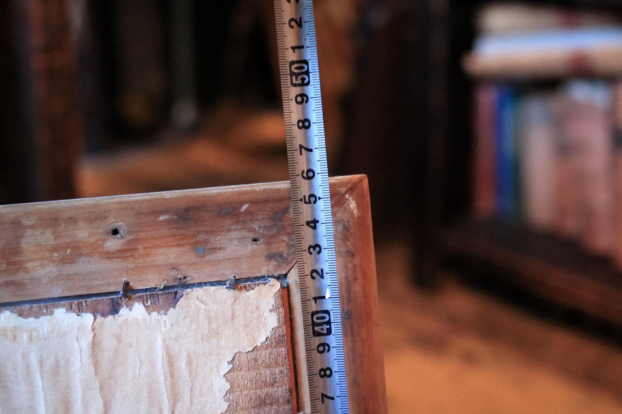 Size: 38 x 46 cm (approx. 15" x 18 1/8"). Condition is consistent with age: visible rubbing and small losses to the gilt/finish (notably around edges and corners), light surface marks, and some age to the backing paper. Ready to hang.