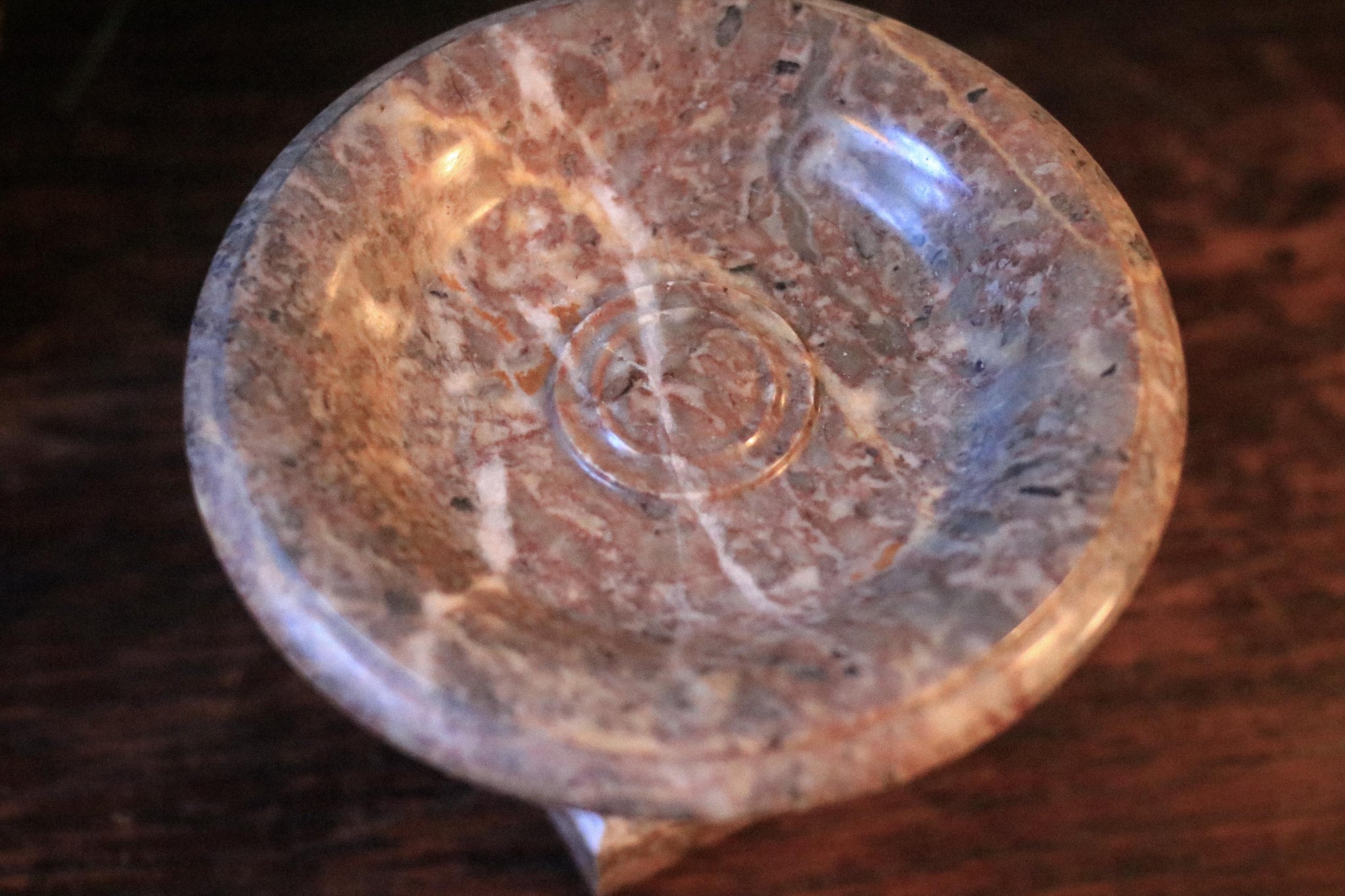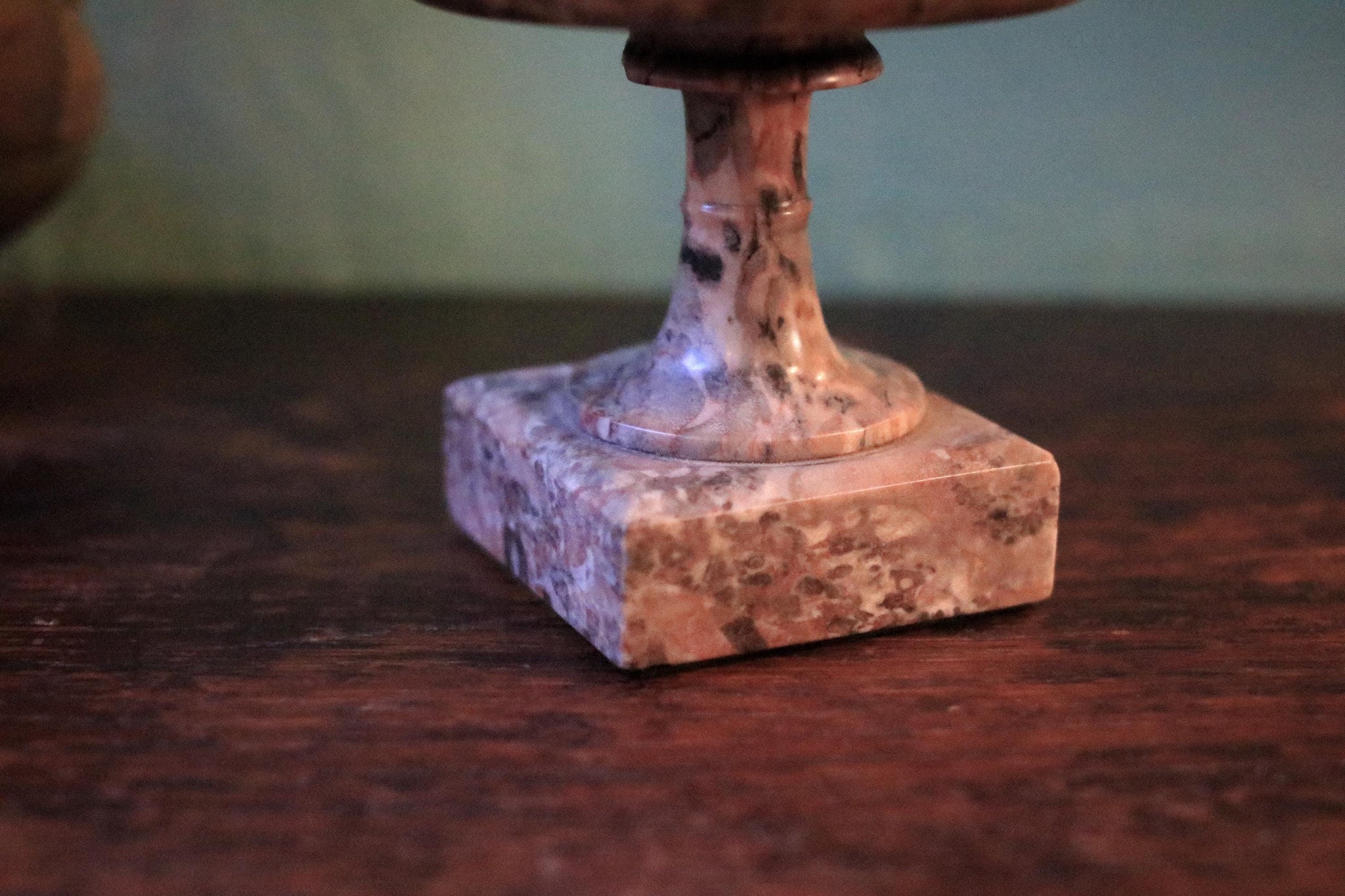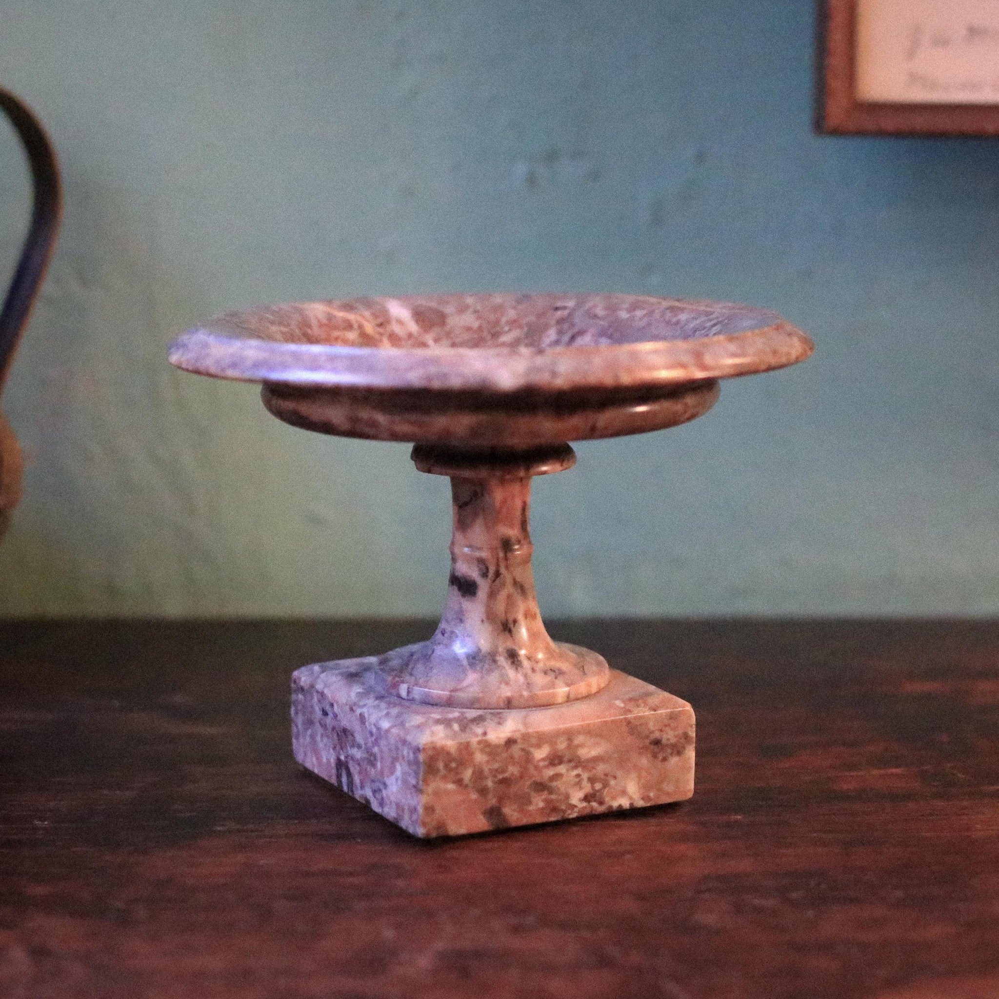 A beautiful antique marble tazza-style pedestal dish with rich natural veining in warm rose, cream and smoky tones. Perfect as a vanity catchall for rings and keys, a small altar/offering bowl, or a display stand for a candle or objet on a bookshelf. It hits that current “old money” neoclassical look brilliantly, and would style effortlessly into castlecore, grand tour, or classic European interiors.
