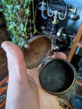 Step back in time with this unique and captivating antique Mughal Indian bronze container, shaped like a hamsa bird.