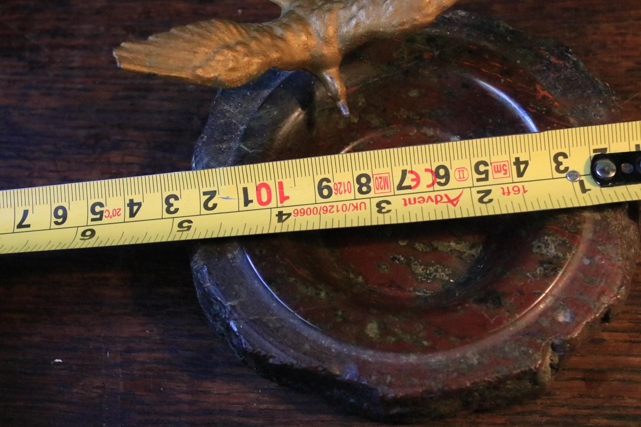 Approx size: dish diameter 12 cm (4.7"), wingspan about 14 cm (5.5"), overall height about 7 cm (2.8").