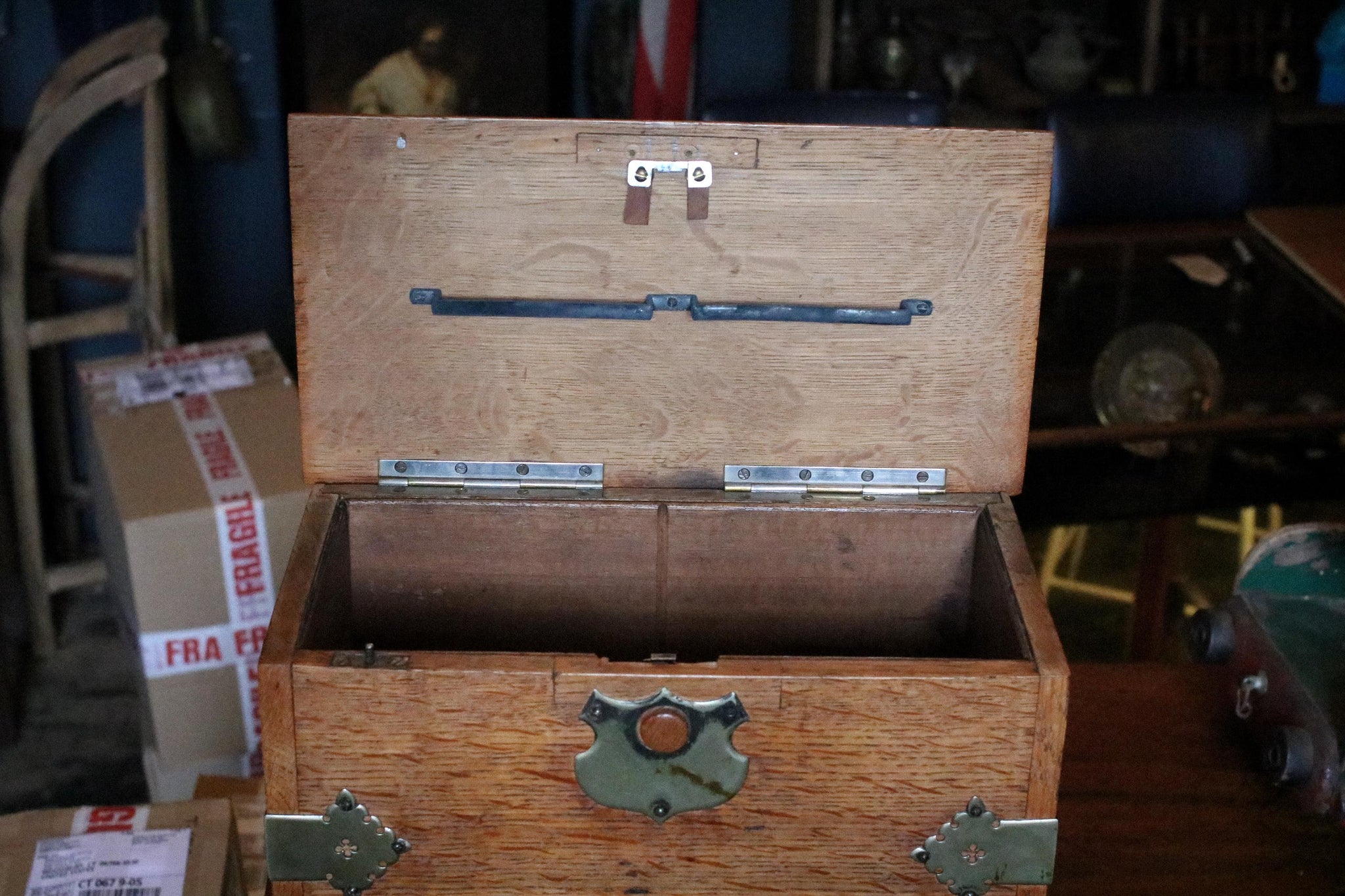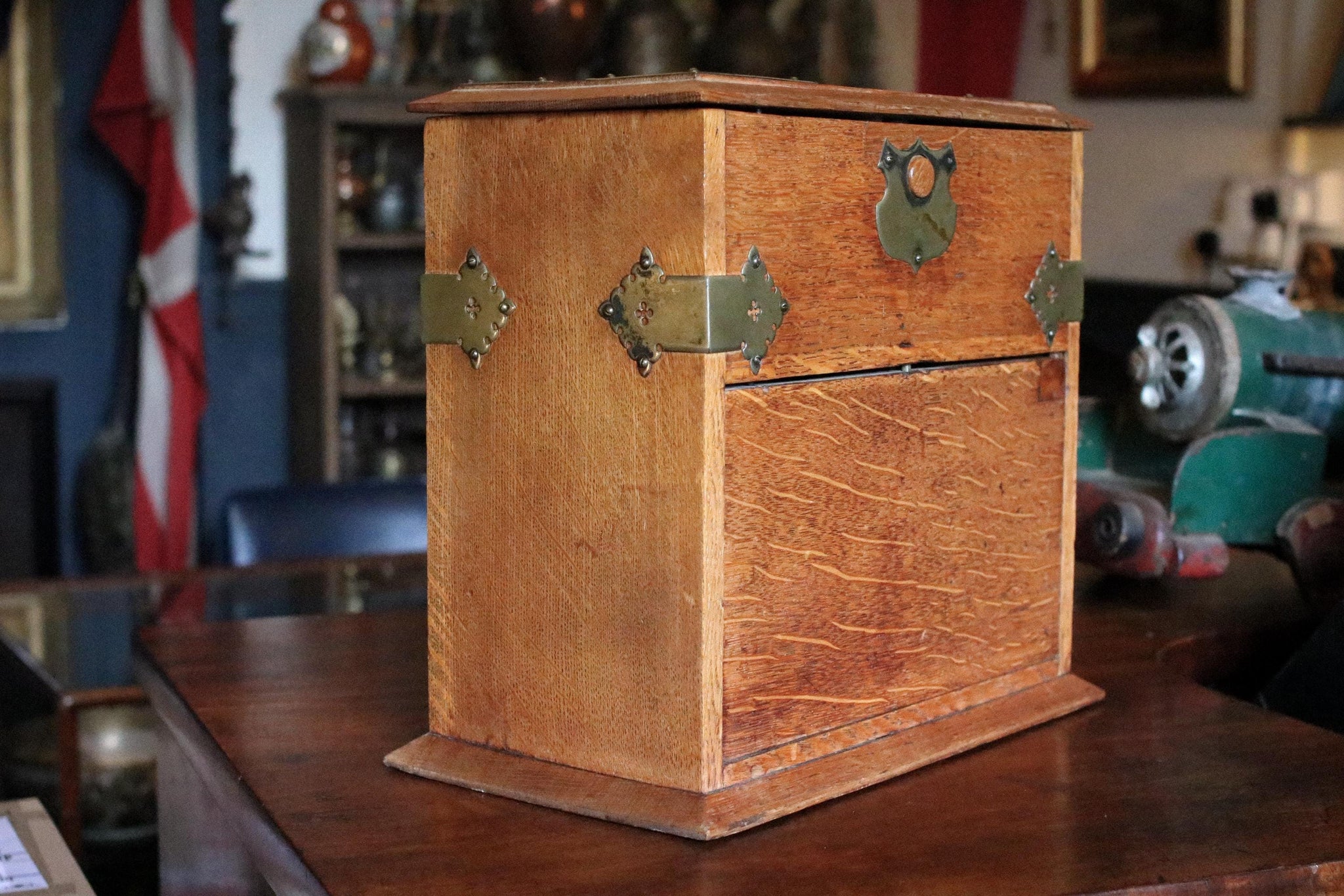 Made in quarter-sawn oak with decorative brass escutcheons and hinges, this piece was made to be both functional and elegant, blending craftsmanship with practicality. A beautiful object in its own right, it now makes a characterful piece of decor and a fine gift for a collector.