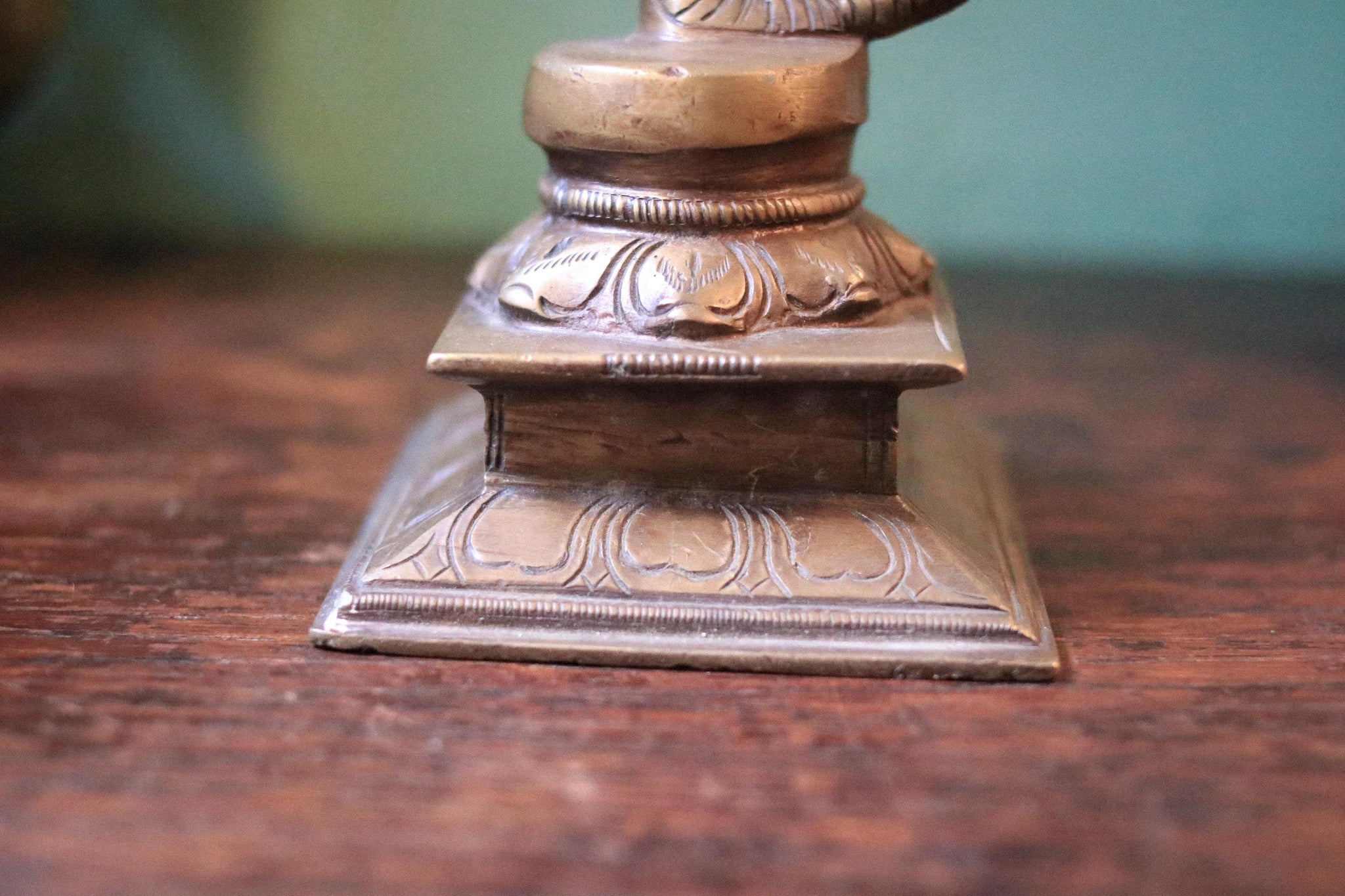 A compelling and spiritually charged work of craftsmanship — perfect for a collector of Indian bronzes, a yoga or meditation space, or as a statement piece within a wabi-sabi or eclectic interior.