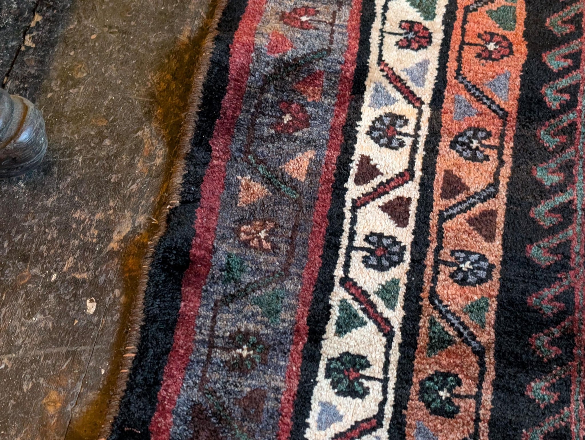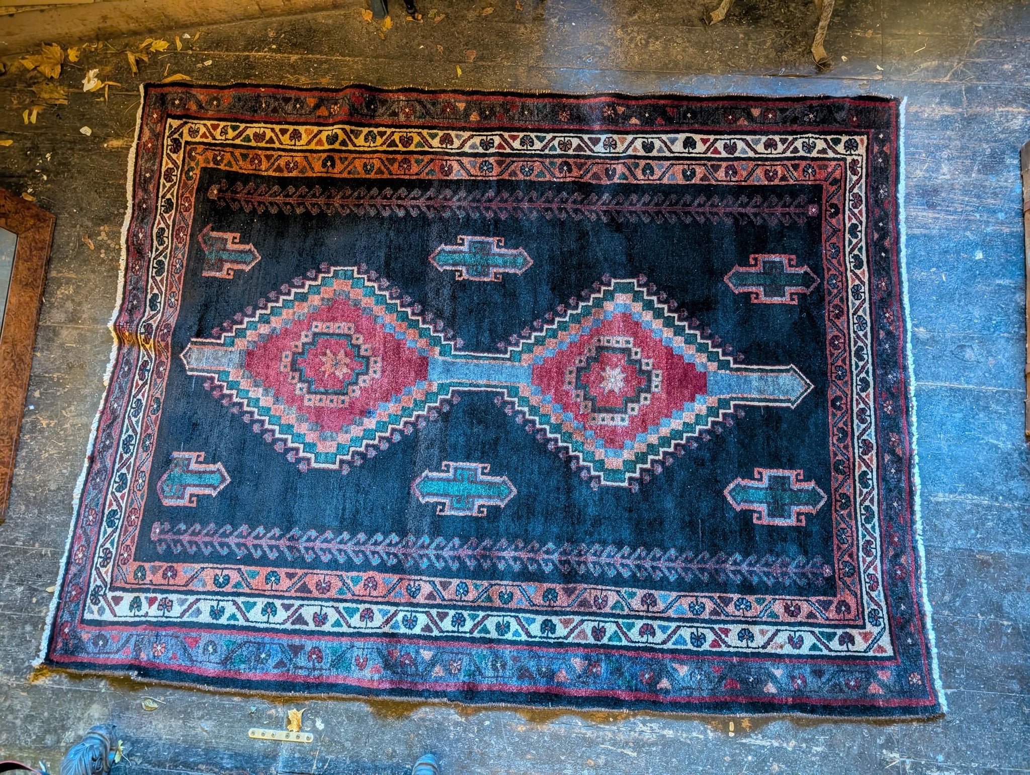 Measured on the floor it’s approx. 210 cm x 161 cm (about 6’10" x 5’3"), so a really nice “proper room” size rather than just a runner. Condition: good, honest vintage use. Pile is thick and soft, no big bald patches, but expect light wear, slightly mis-shapen and doesn't sit completely flat, a couple of small uneven areas to the edges and minor age-related marks — exactly what you want if you like rugs that don’t look new.
