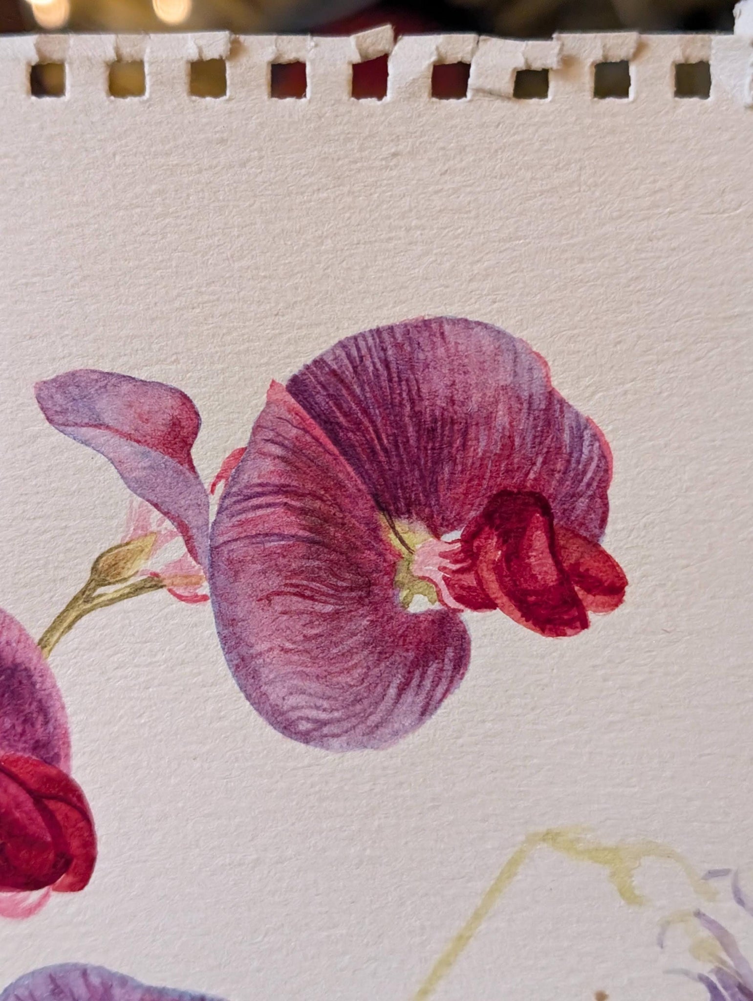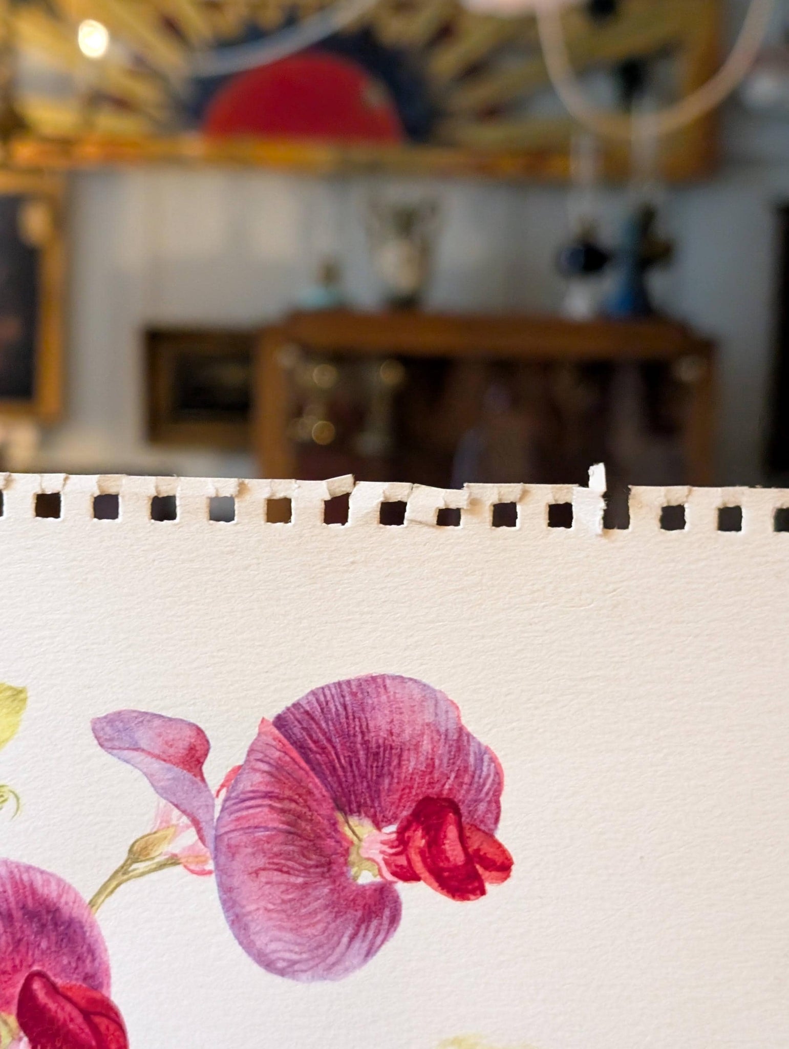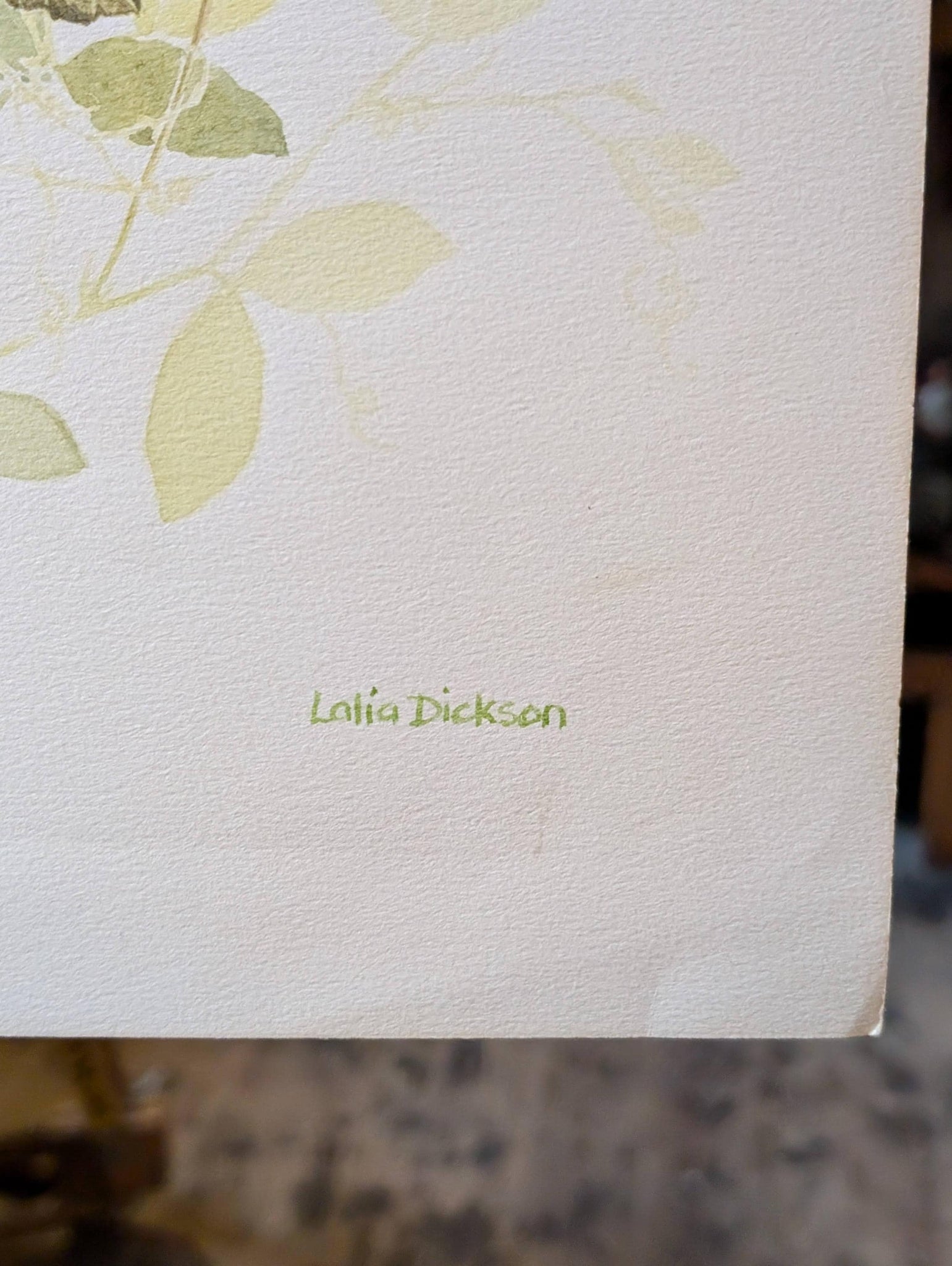 Rendered in transparent washes with crisp pencil underdrawing, this sheet captures looping tendrils and vibrant petals in Dickson’s signature, quietly naturalistic style. Signed lower right. Good, presentable condition with light handling, a perforated sketchbook edge to the top, and a small corner crease—see photos. Unframed and ready to mount to taste.