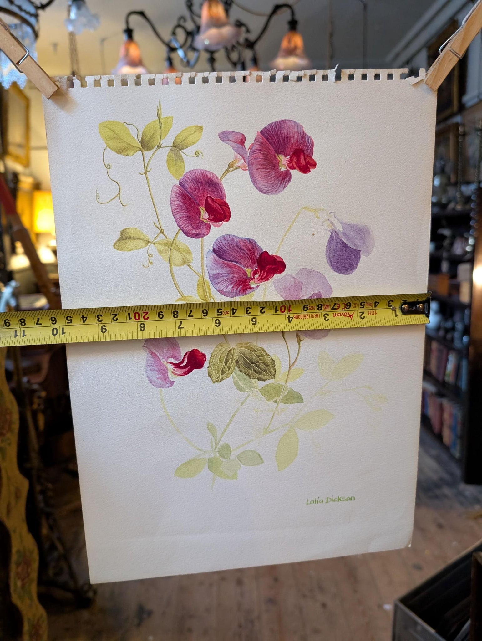 Delicate original watercolour study of sweet pea flowers by Lalia Caroline Dickson, the Scottish botanical and still-life artist who trained at the Edinburgh College of Art (1930–34) and later worked as a freelance illustrator. Dickson is recorded by the Hunt Institute for Botanical Documentation and represented on Art UK for her refined flower paintings.