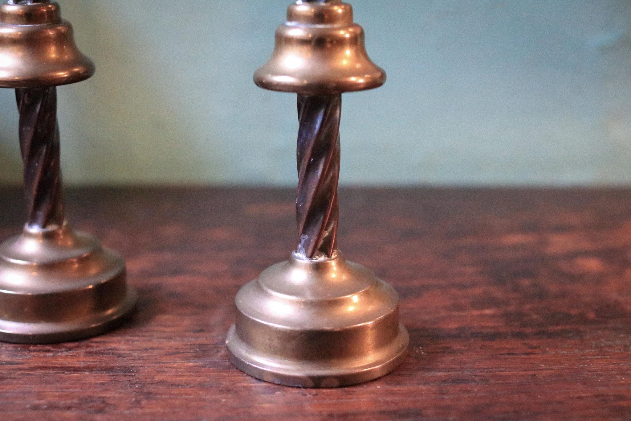 They take standard taper candles and sit nicely balanced on stepped bases. Expect light surface marks and natural patina consistent with age and use, which only adds to the character.