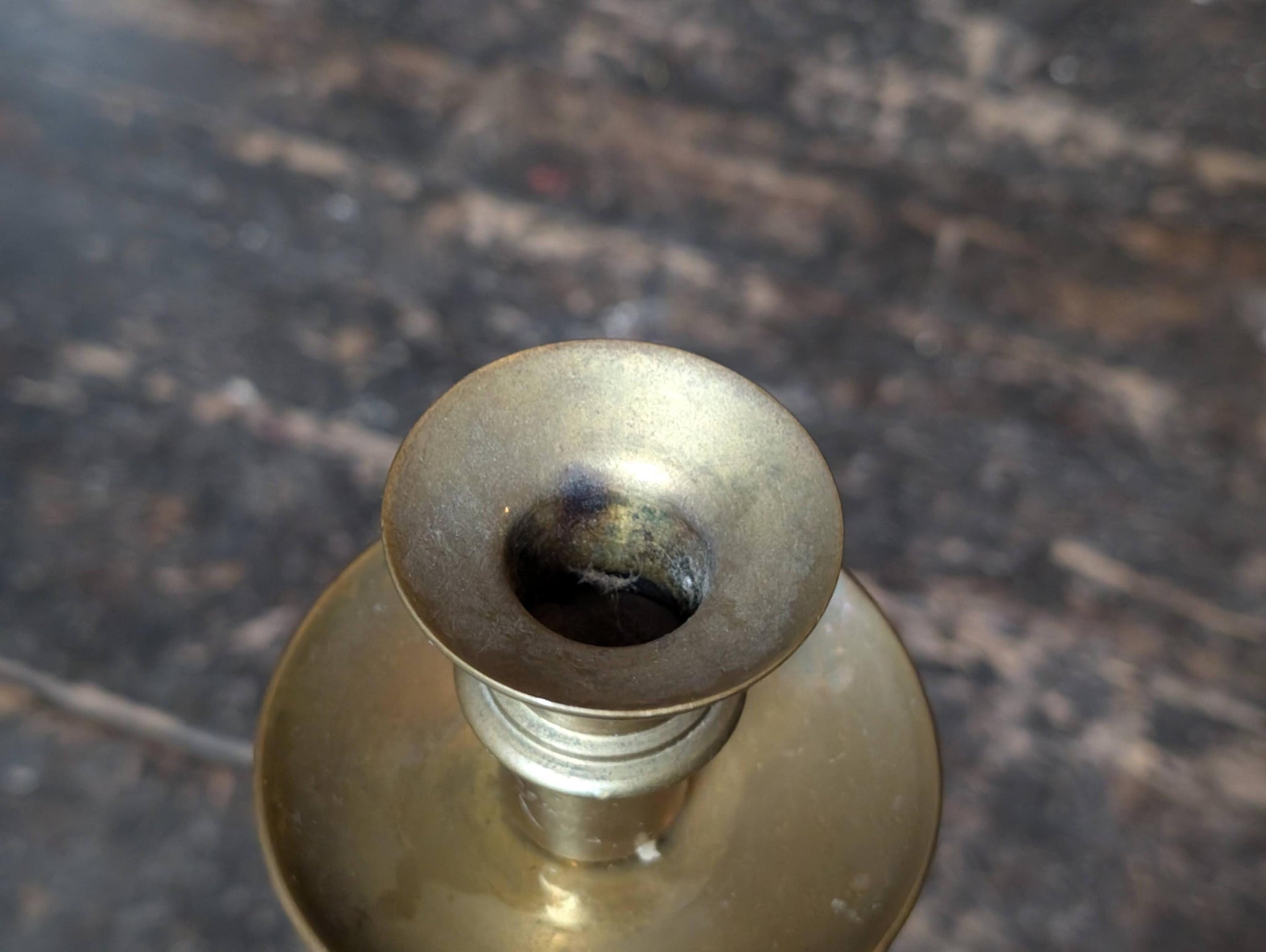 Condition is decorative and honest: mellow patina, polishing swirls, the odd shallow ding and fleck of verdigris, and minor age wear to the rims—nothing that detracts. Ready to dress a dining room, altar or moody bar.