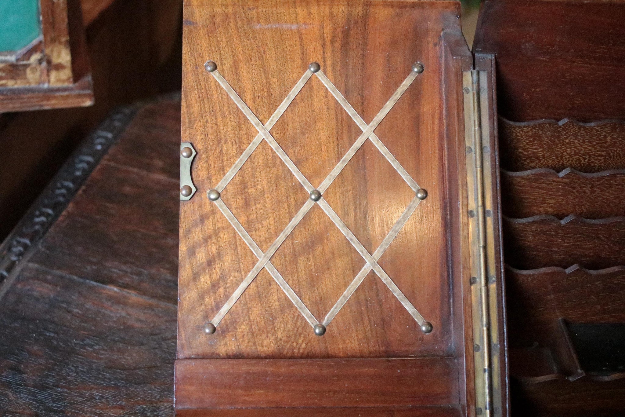 • Load image into Gallery viewer, Victorian Mahogany Stationery Cabinet Writing Slope – Double Fall-Front With Letter Racks, Pen Tray & Glass Inkwell, c. 1880–1900