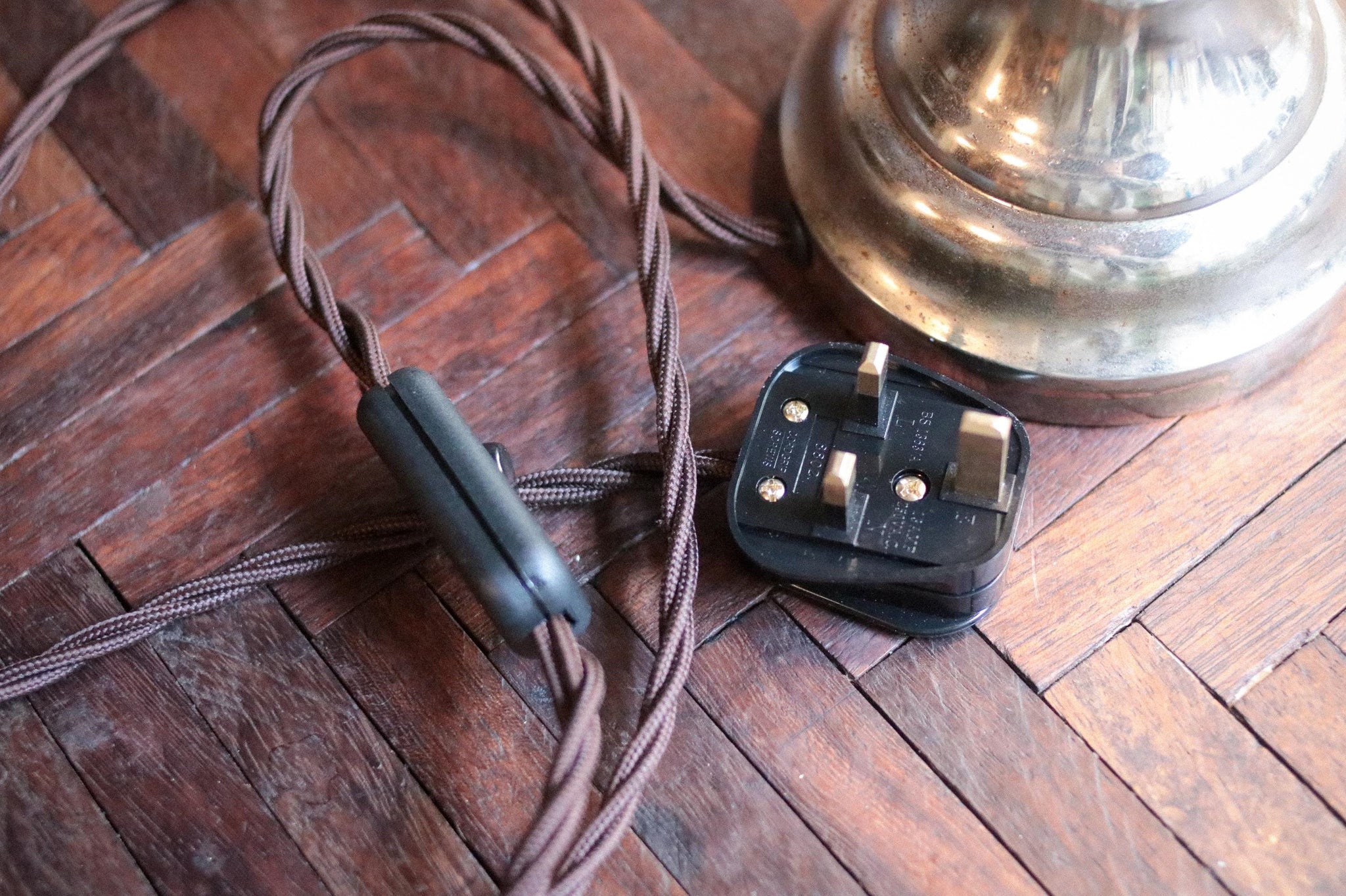 The lamp has been professionally rewired with a brown braided cord, inline switch, and UK plug for modern safety and convenience, making it fully functional and ready for immediate use. It provides a soft, diffused light ideal for a desk, bedside, or as an accent piece in any interior inspired by vintage or Art Deco aesthetics.