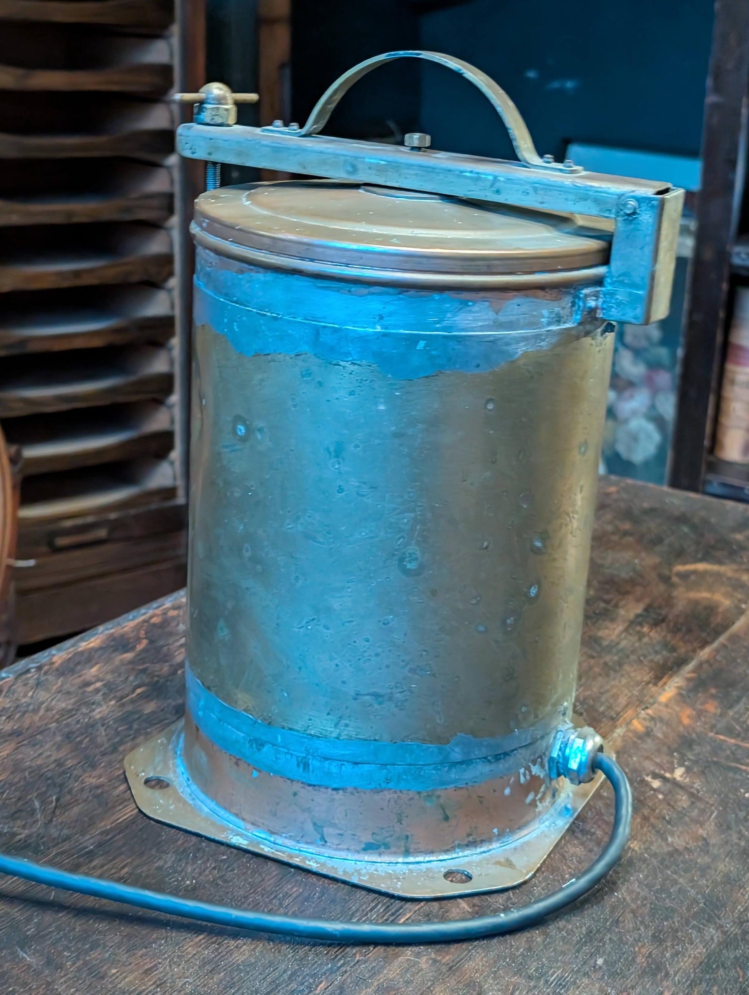 This piece is in good working order with a modern cable and plug; ideal as a statement bedside lamp, hallway accent or moody bar light. Currently wired with a UK plug and supplied with an adapter for US buyers so it’s ready to plug in and use straight away. Takes standard bulbs It shows the expected signs of life from years at sea – surface marks, small dings, soldered repairs to the casing and age to the brass finish – all part of the honest, salty patina that collectors look for.