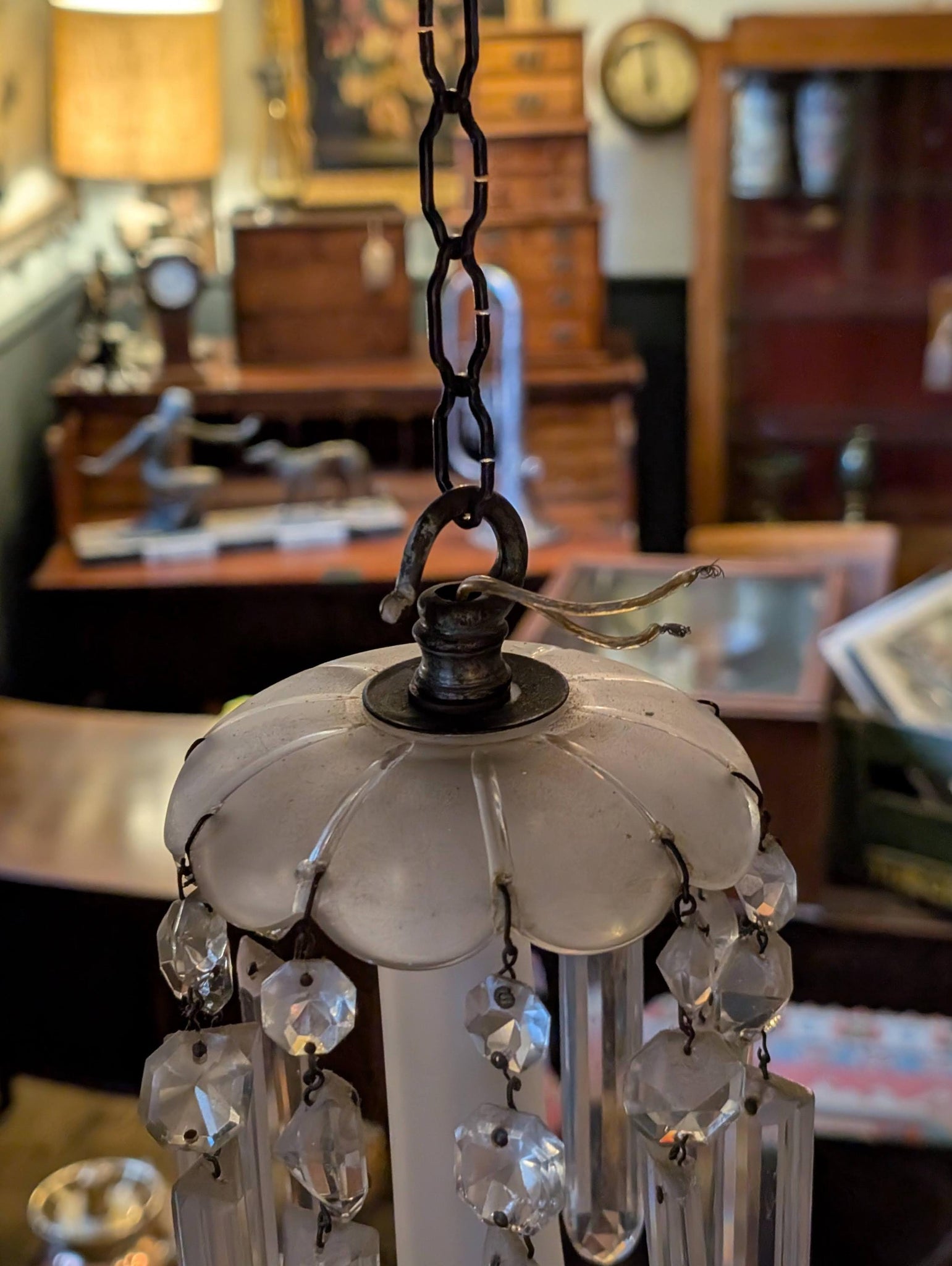 Provenance: this chandelier and related cabin wall lights are believed to have come from a decommissioned ship captained by Captain James Bailey. Captain Bailey married Janet, the daughter of Hugh Arbuthnott (d. 1881), the Merchant Baker in Main Street, Johnshaven. The chandelier is said to be part of the furnishings of one of the two large houses built by Captain Bailey in Johnshaven.