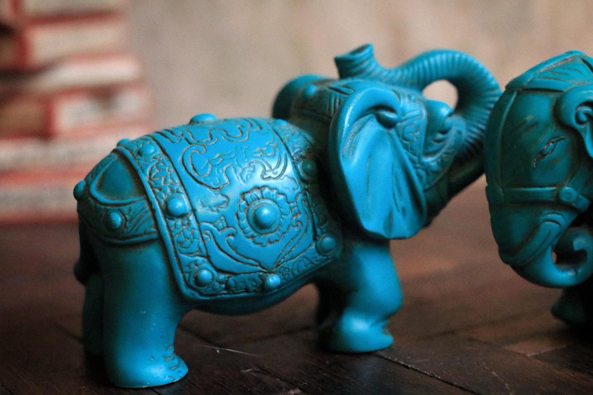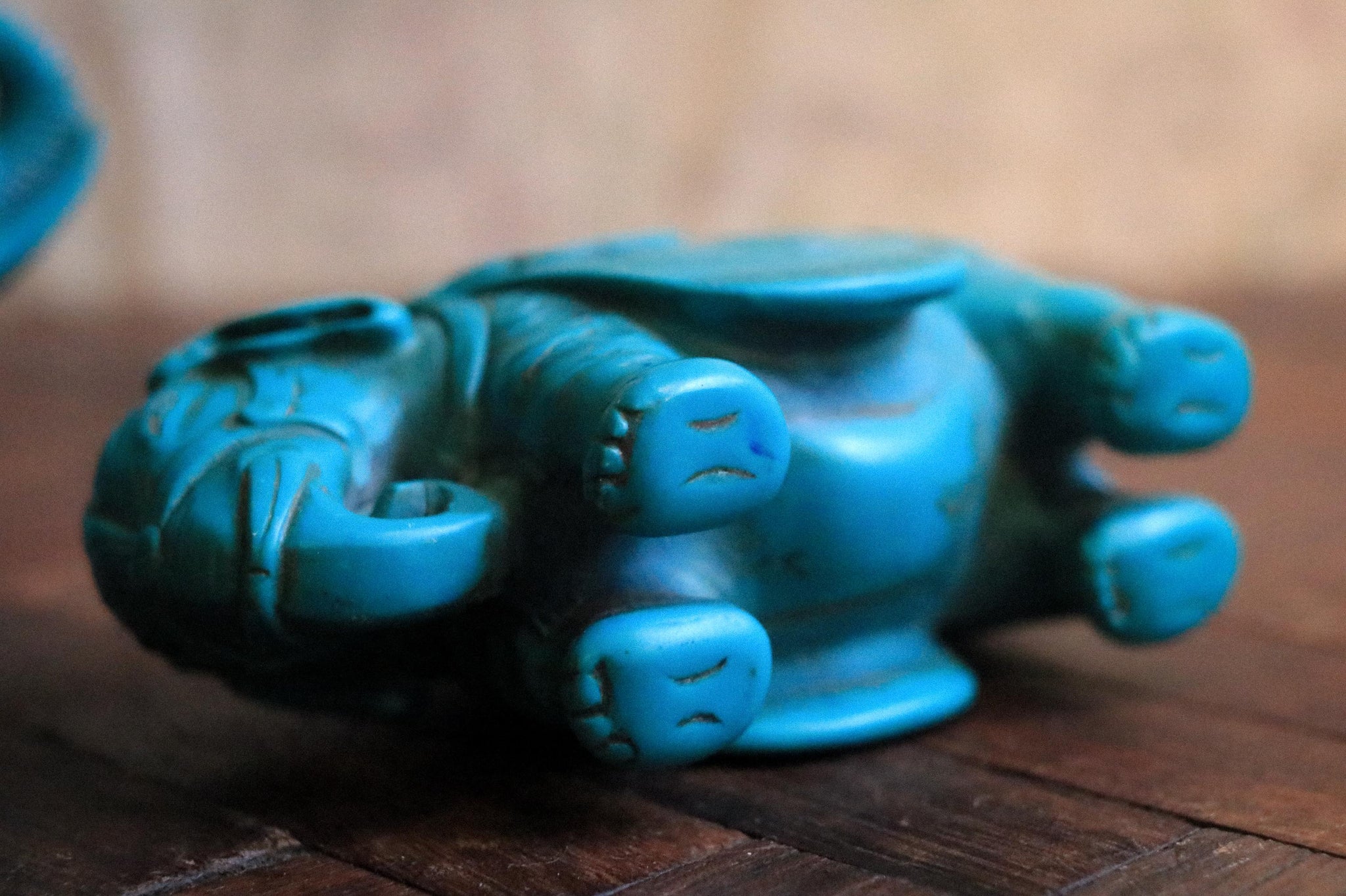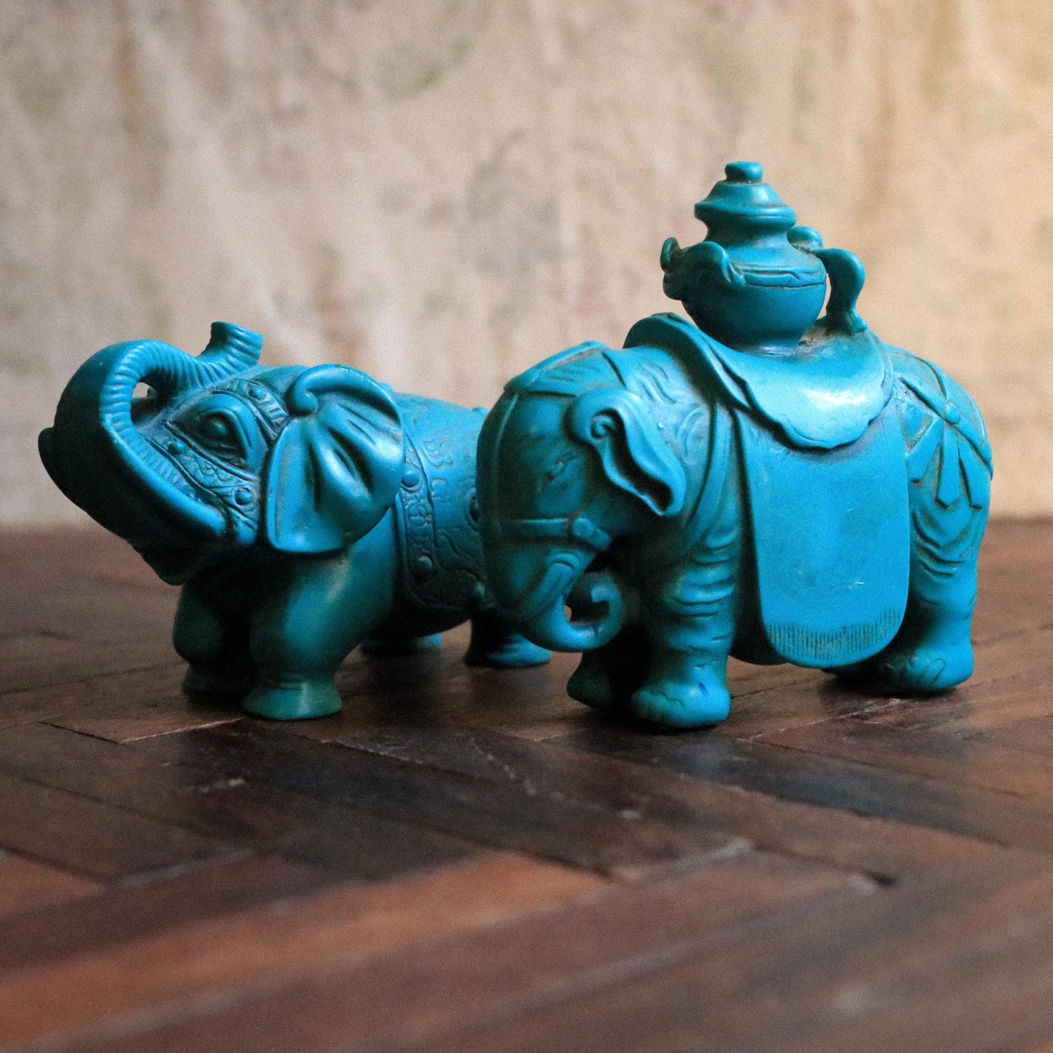 Vintage Chinese Turquoise Resin Elephant Figures – Pair, 8 Cm Tall