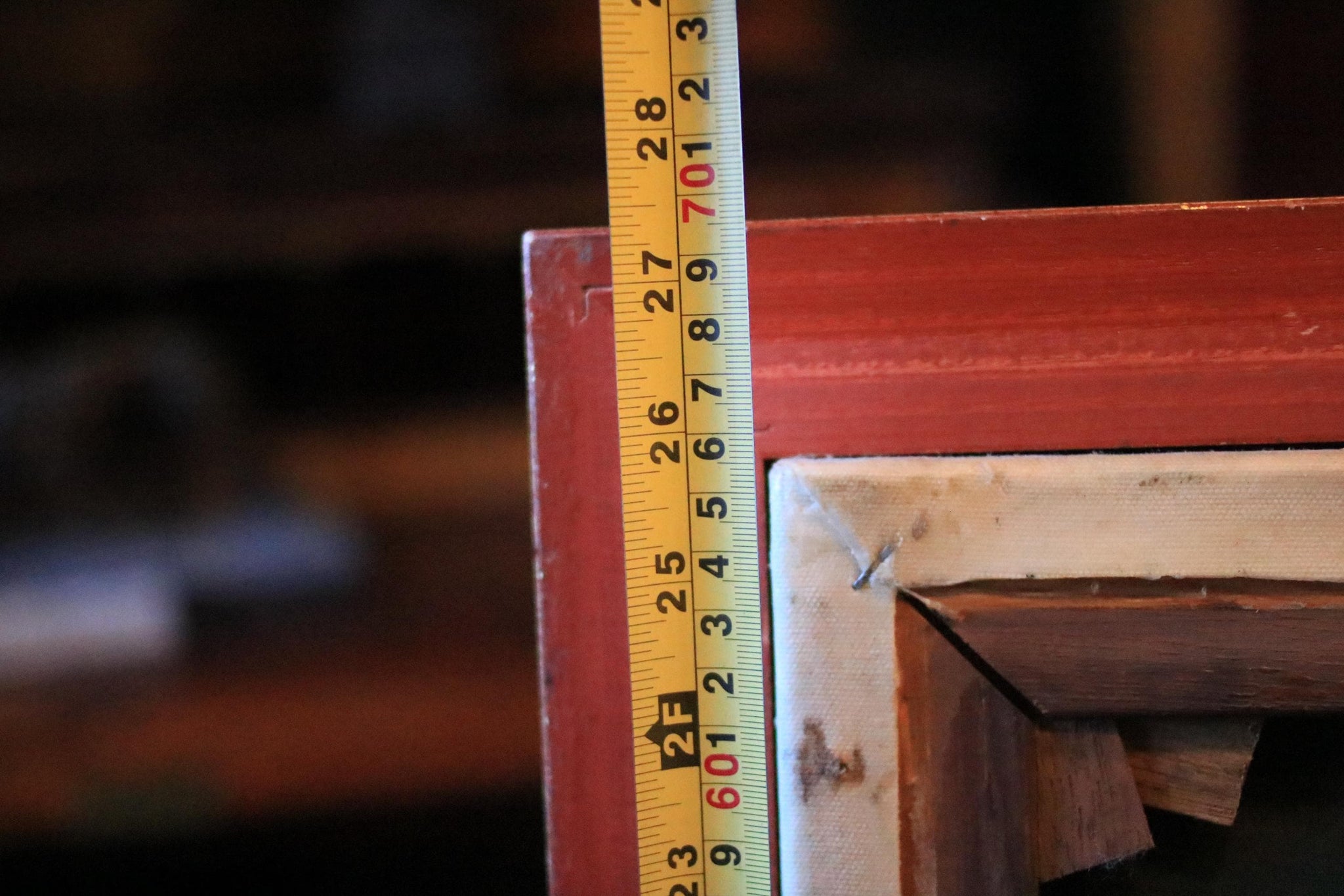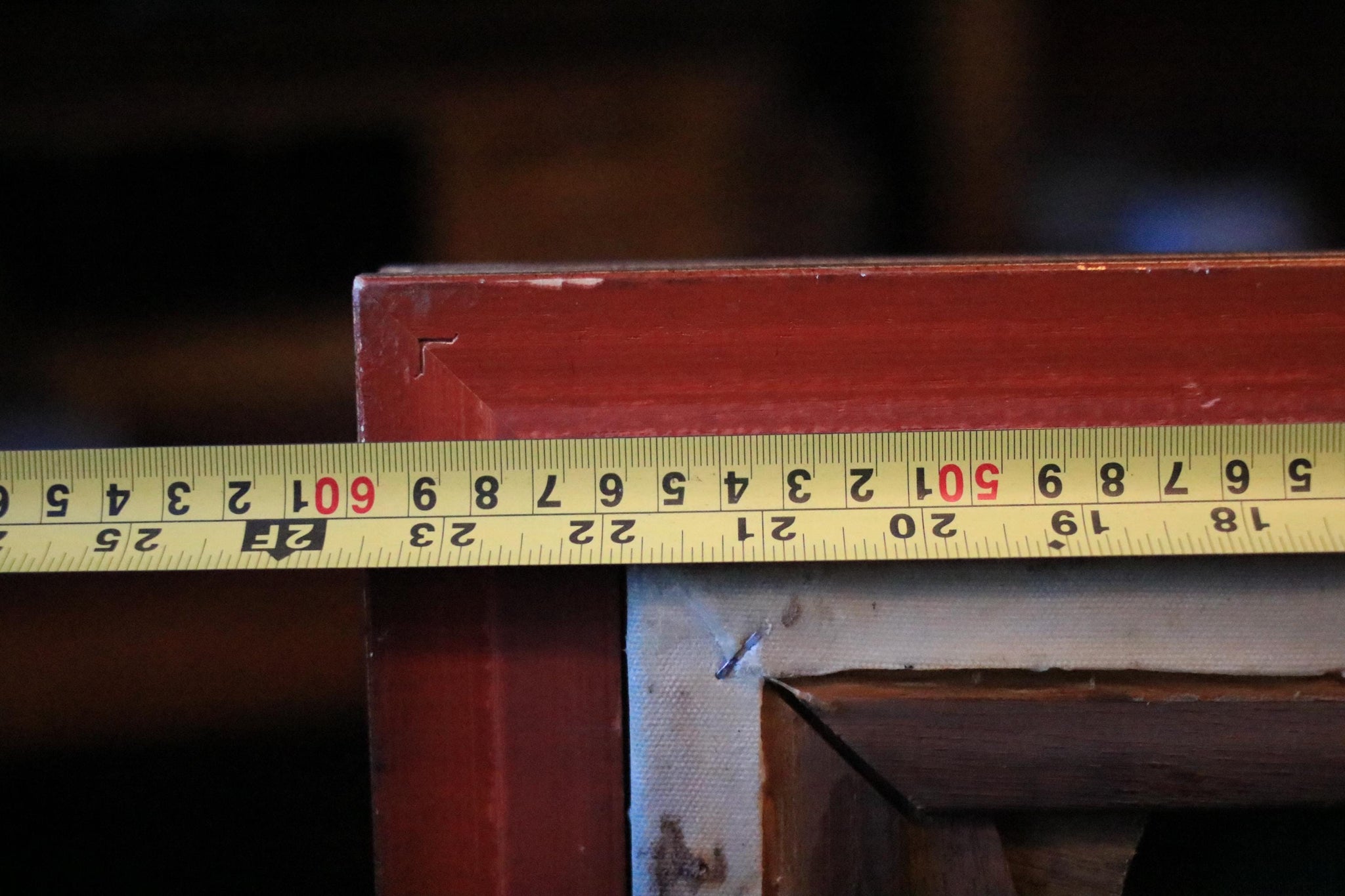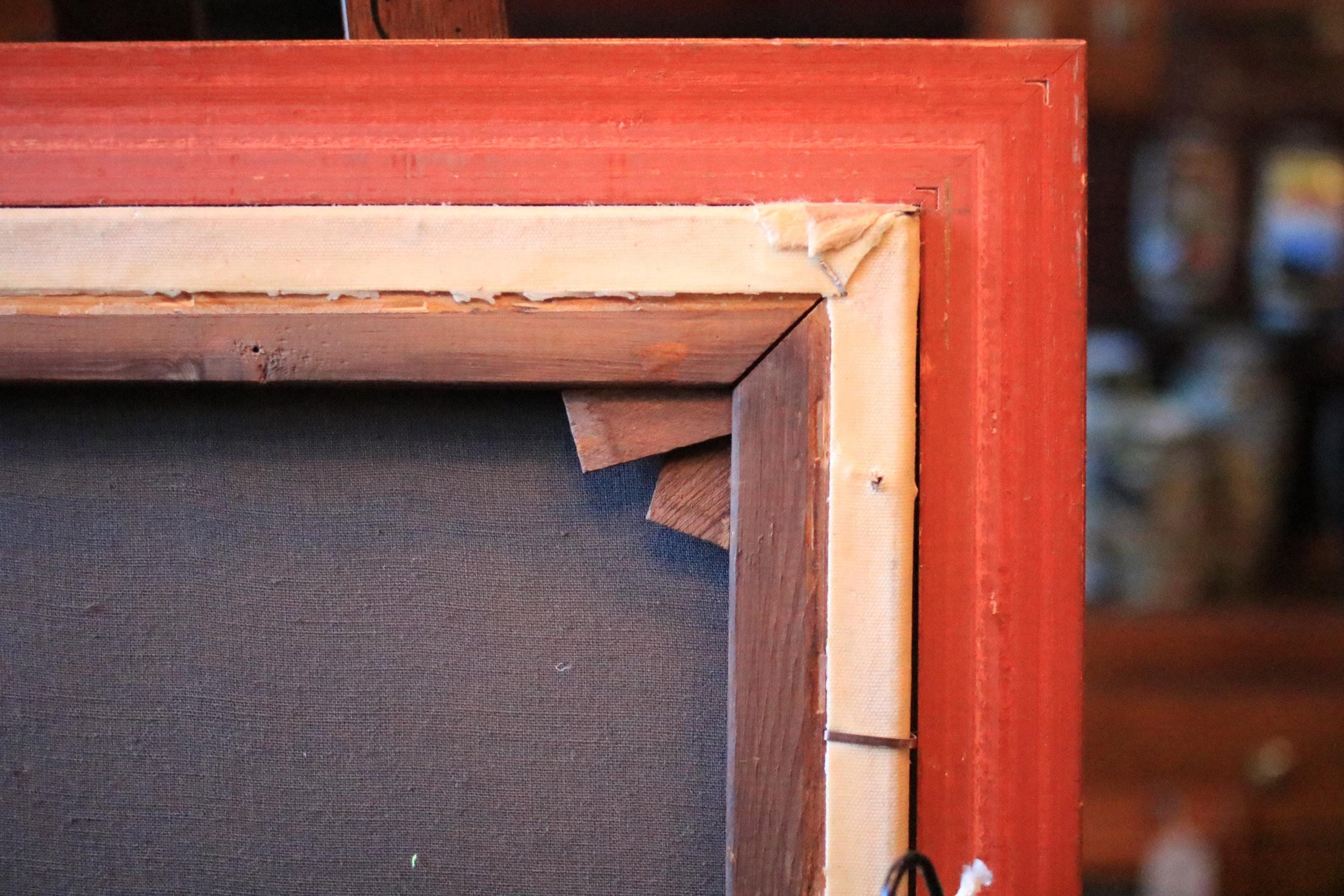 Condition is vintage with gentle age to the surface and frame. There is a tiny chip/small area of paint loss to the background near the top of the composition, shown clearly in the 8th photo, plus minor marks and wear to the frame consistent with age and display. Overall it presents beautifully and has that lovely soft patina you only get with older pieces.