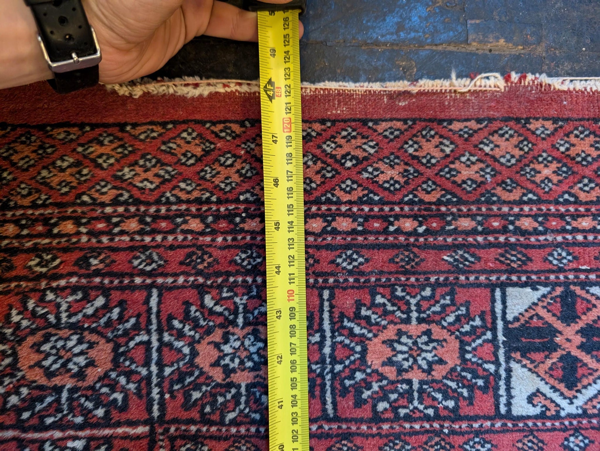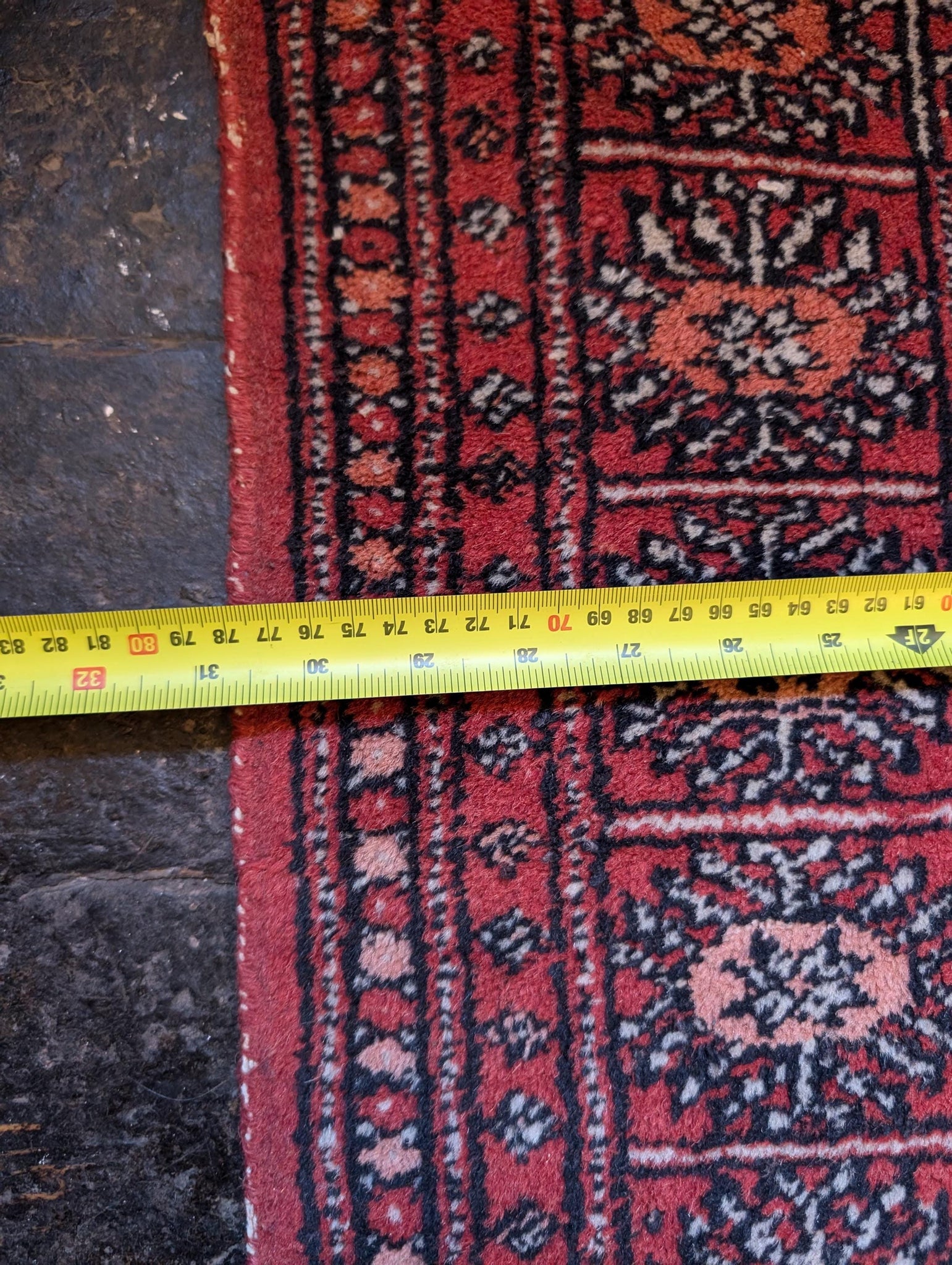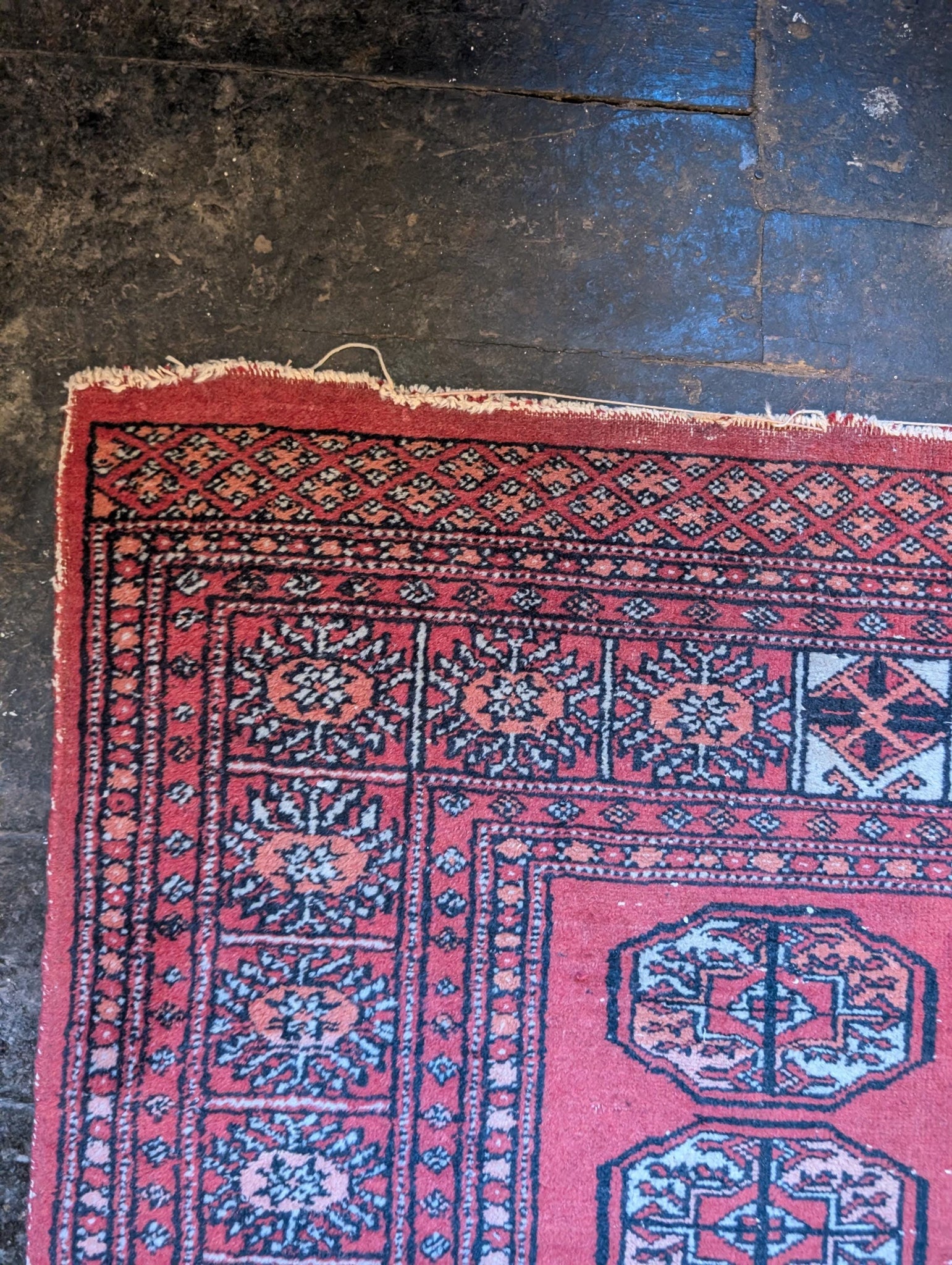 Good vintage condition with surface wear and colour fading, particularly to the central area. Some fraying to the fringes, as shown. Structurally sound and lays flat.